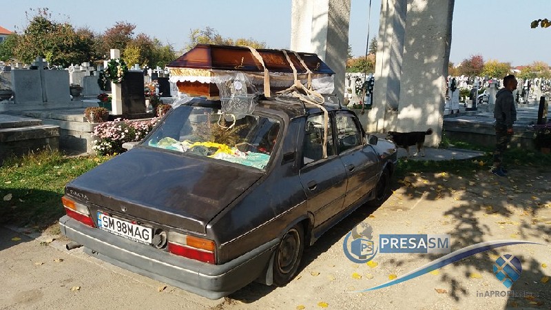 Reamintim că polițiștii l-au identificat și oprit în trafic pe strada Petru Rareș din municipiul Satu Mare în 20 octombrie. Sicriul risca să cadă în orice moment, periclitând astfel siguranța traficului rutier.