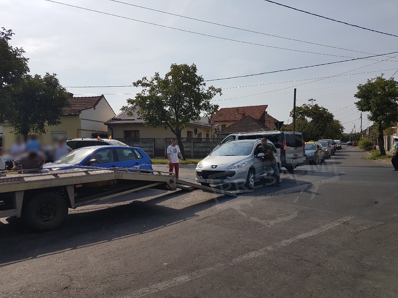 Astfel, Volkswagen-ul a lovit în plin Peugeot-ul. Din câte se pare, cele două părți au ajuns la un acord pe cale amiabilă, cu atât mai mult cu cât nicio persoană nu a fost rănită, rezultând doar pagube materiale.
