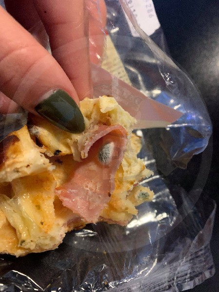 Sătmăreanca și-a cumpărat produsul de patiserie, ambalat, de la un supermarket din Micro 16. Doar că "melcul pizza" a venit la pachet cu mucegai.