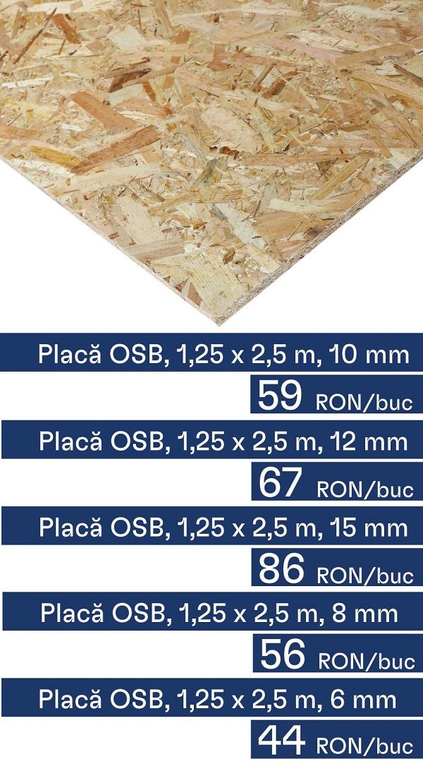 Promoție la depozitul Lebăda din municipiul Satu Mare, situat pe strada Gheorghe Barițiu, nr. 27! Plăcile OSB (Oriented Strand Board) sunt o alegere populară în industria construcțiilor, deoarece oferă proprietăți superioare de rezistență și durabilitate, fiind folosite în principal pentru construcția de pereți, acoperișuri și podele.