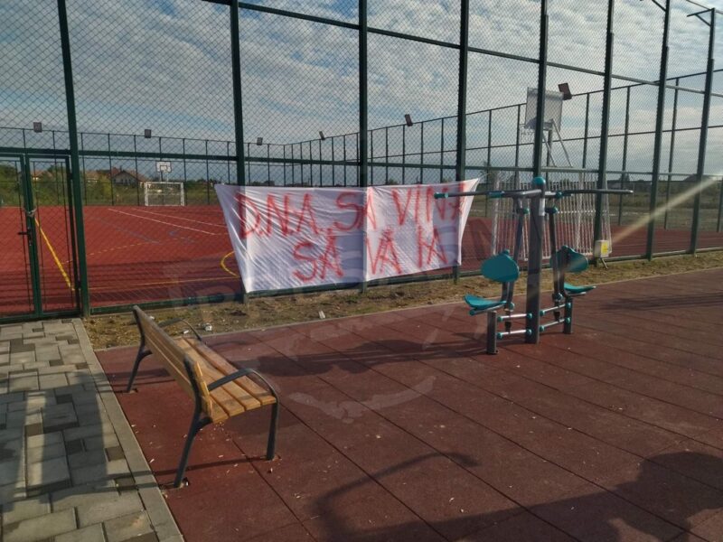Mai exact, una sau mai multe persoane rămase necunoscute cu afișat un banner pe gardul terenului de sport pe care scria: ”DNA să vină să vă ia”, cu aluzie cel mai probabil la calitatea îndoielnică a lucrărilor. Din totalul de 13,1 milioane de lei s-au plătit până în acest moment doar 5,1 milioane de lei.