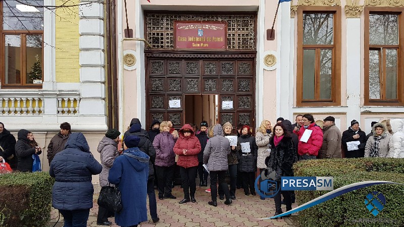 Angajații Casei Județene de Pensii Satu Mare au ieșit astăzi în stradă, în semn de protest față de salariile mici, în raport cu alte categorii de bugetari.