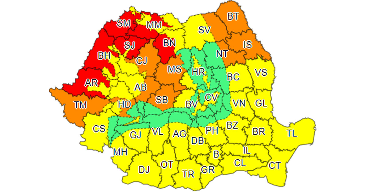 Administrația Națională de Meteorologie a emis un Cod roșu de caniculă pentru județele Arad, Bihor, Satu Mare, Sălaj, Maramureș și Bistrița-Năsăud, avertizare valabilă pentru zilele de 30 iunie și 1 iulie. Meteorologii avertizează că ne vom confrunta cu temperaturi extreme și disconfort termic deosebit de accentuat