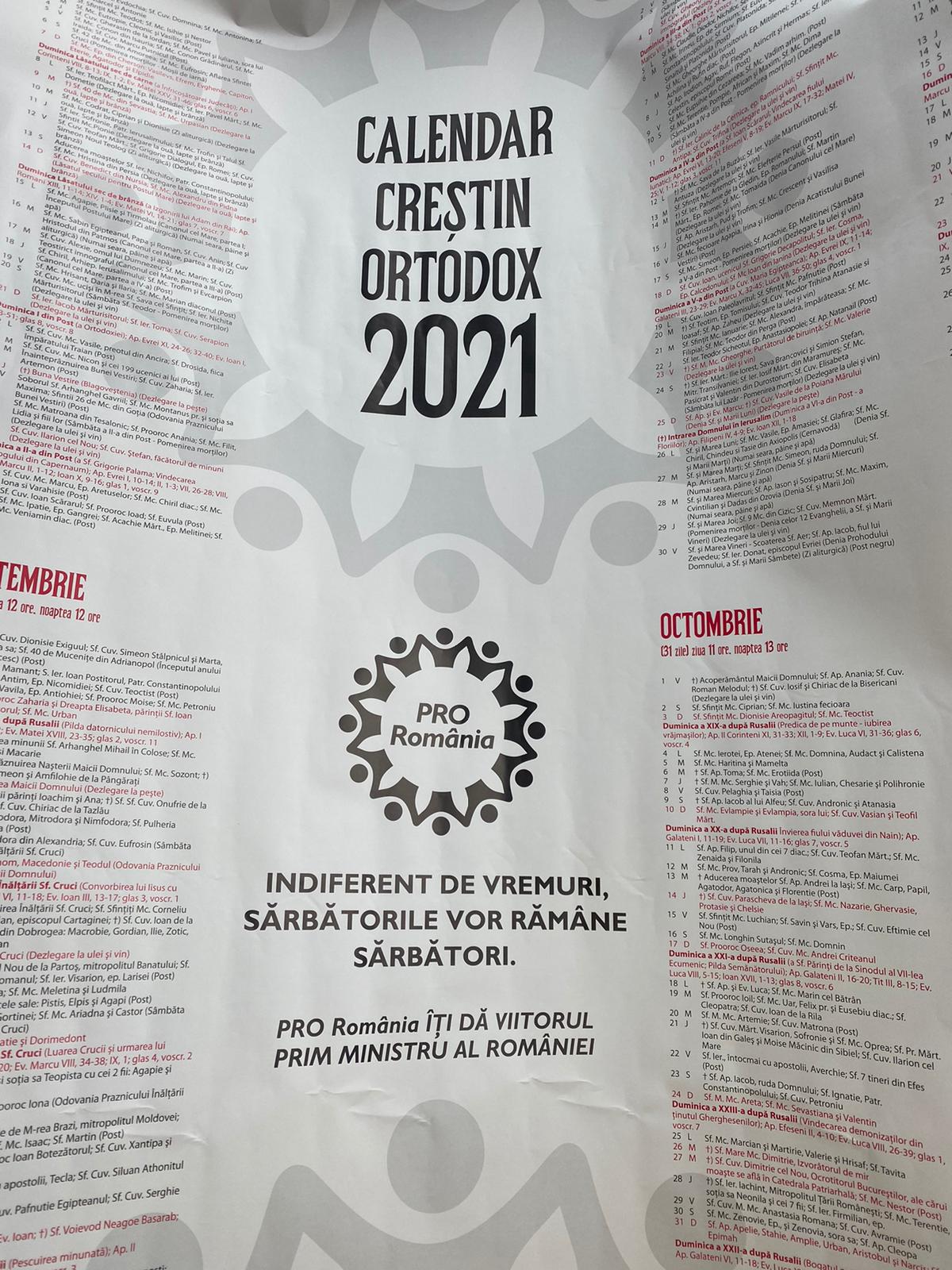 Constatăm cu tristețe că cei de la PRO România Satu Mare recidivează în intenția lor de a amesteca biserica și însemnele sale în campania electorală. Condamnăm cu fermitate orice tip de imixtiune în viața și activitatea bisericii și considerăm o adevărată impietate folosirea unui Calendar bisericesc ca material de propagandă electorală. Pro România uzurpă astfel atribuțiile Patriarhiei Române, care este singura în măsură să editeze un astfel de calendar.