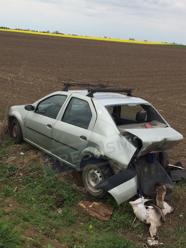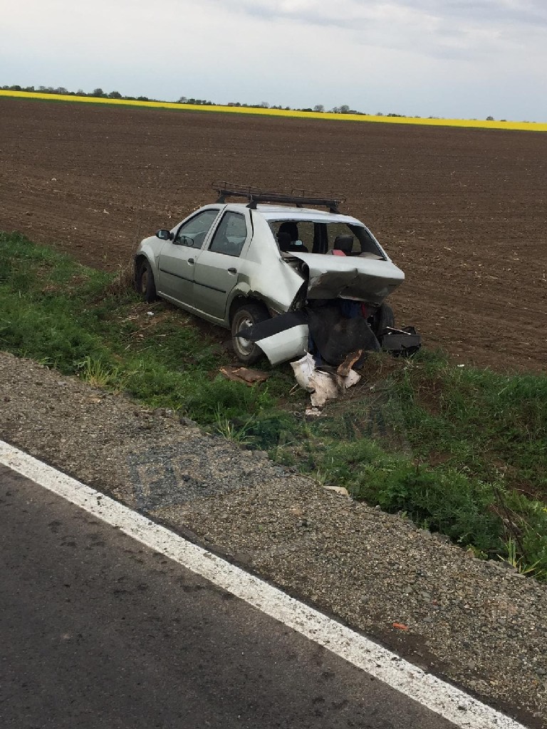 Cele două mașini au intrat în coliziune, iar autoturismul Dacia Logan a fost proiectat direct pe câmp, oprindu-se la câțiva metri de partea carosabilă.