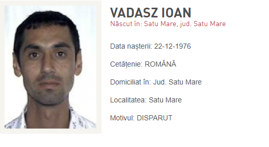 În cursul lunii octombrie 2012, Vadasz Ioan a plecat voluntar de la locuința sa din orașul Satu Mare, la muncă în Cehia și până în prezent nu a revenit. A mai fost plecat la muncă în Cehia în anii 2010-2011.