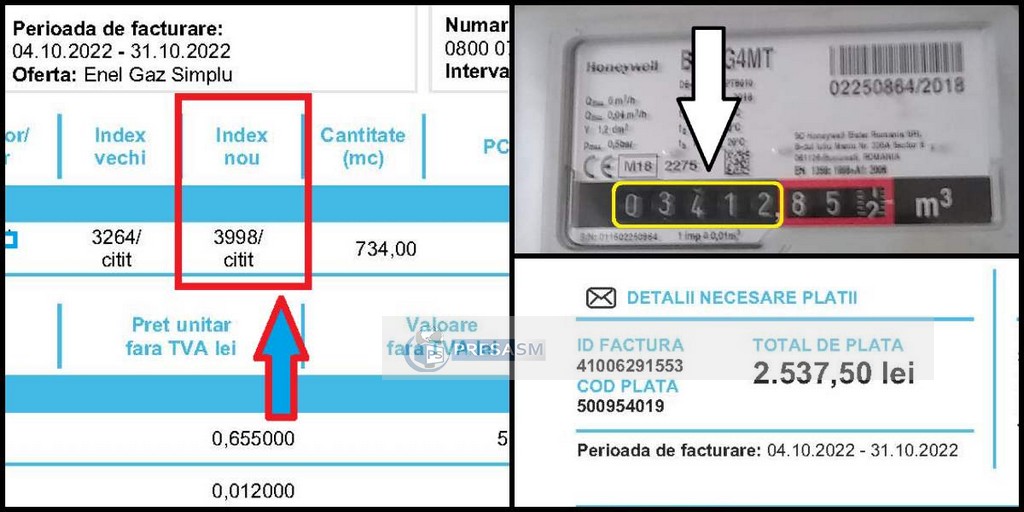 Mai exact, în loc de indexul real de pe contor, respectiv 3412, firma care se ocupă cu citirea contoarelor (aparent Delgaz Grid) au introdus în sistem valoarea de 3998 metri cubi! Astfel, femeia s-a trezit cu o factură de peste 2500 de lei, de două ori cât pensia sa lunară.