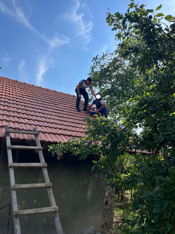 Polițiștii s-au deplasat cu operativitate la domiciliul bărbatului, identificându-l pe acesta pe acoperișul imobilului său, având o funie legată de gât și de un copac din apropierea casei.