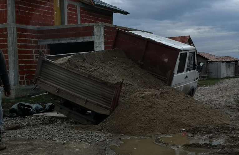 Conform oamenilor din zonă, pe acea stradă s-a introdus recent canalizarea și, cel mai probabil, firma nu a tasat cum trebuie pământul din jurul țevii de canalizare. Acesta s-a surpat sub greutatea autobasculantei și a făcut-o să rămână blocată și să își piardă încărcătura din benă.