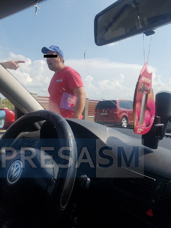 Individul și-a ieșit din minți și a pornit în urmărirea femeii. A blocat mașina în care se afla femeia, oprindu-se cu autoturismul personal chiar în fața ei. Apoi i-a adresat cuvinte grele, după care a scuipat-o în față.