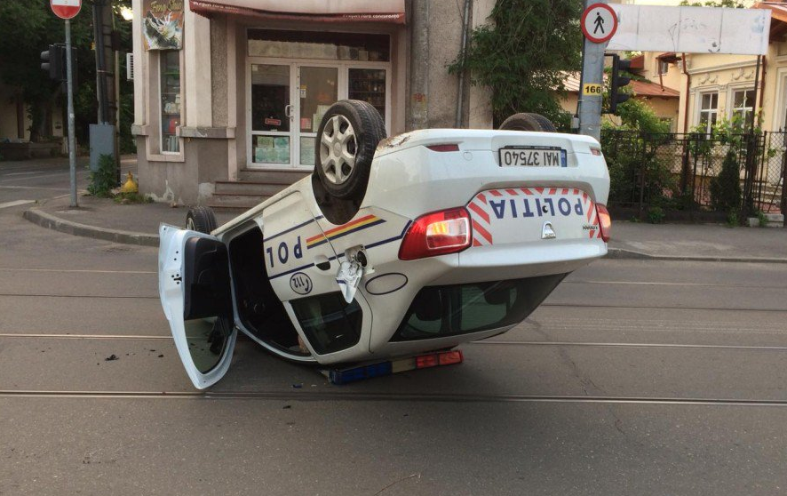FOTO. Se întâmplă în România. Un polițist beat, cu mașina răsturnată