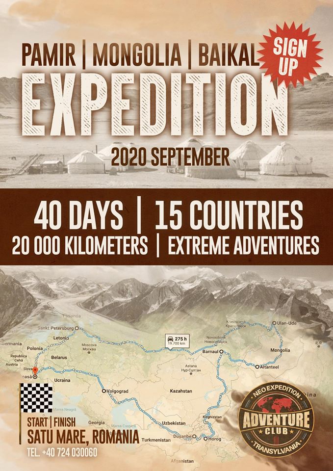 ”În următoarea expediție de anvergură (expediție în grup) vom porni în 10 Septembrie. Avem înscrise 9 echipaje, mai este loc pentru o singură mașină. Va fi o aventură extremă de neuitat! 20.000 de kilometri și 15 țări: Drumul Mătăsii, Lacul Aral, Mongolia, Kirgizstan, Uzbekistan, Kazakhstan, Tadjikistan - unde vom merge 600 kilometri paralel la granița cu Afganistan, Munții Pamir - unde vom urca cu mașina la 4.655 metri, Munții Altai, Lacul Baikal și Siberia! Dacă ești interesant contactează-ne! Te așteptăm! TEL: 0724-030060”, susține Attila Bertici.