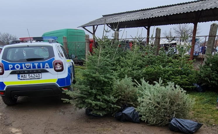 De asemenea, polițiștii au ridicat în vederea confiscării 220 de pomi de crăciun.