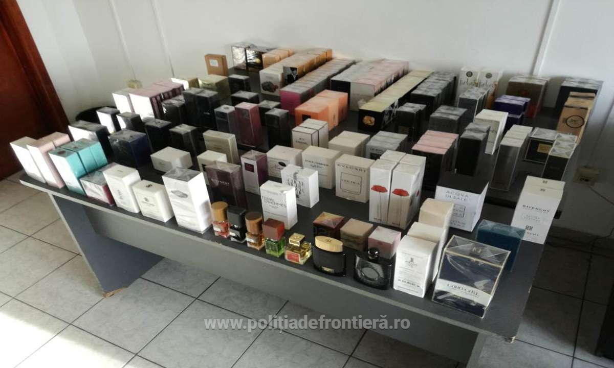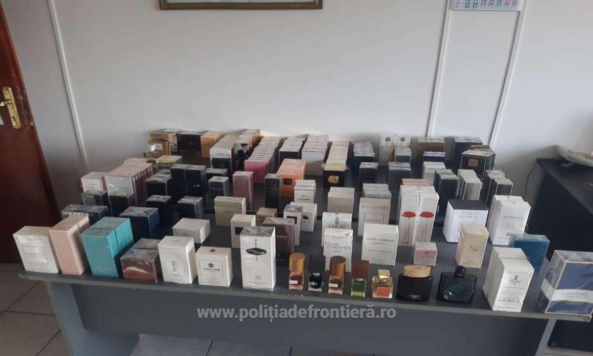 FOTO. Sute de parfumuri confiscate la PTF Petea. ”Fake”-uri vândute ca originale