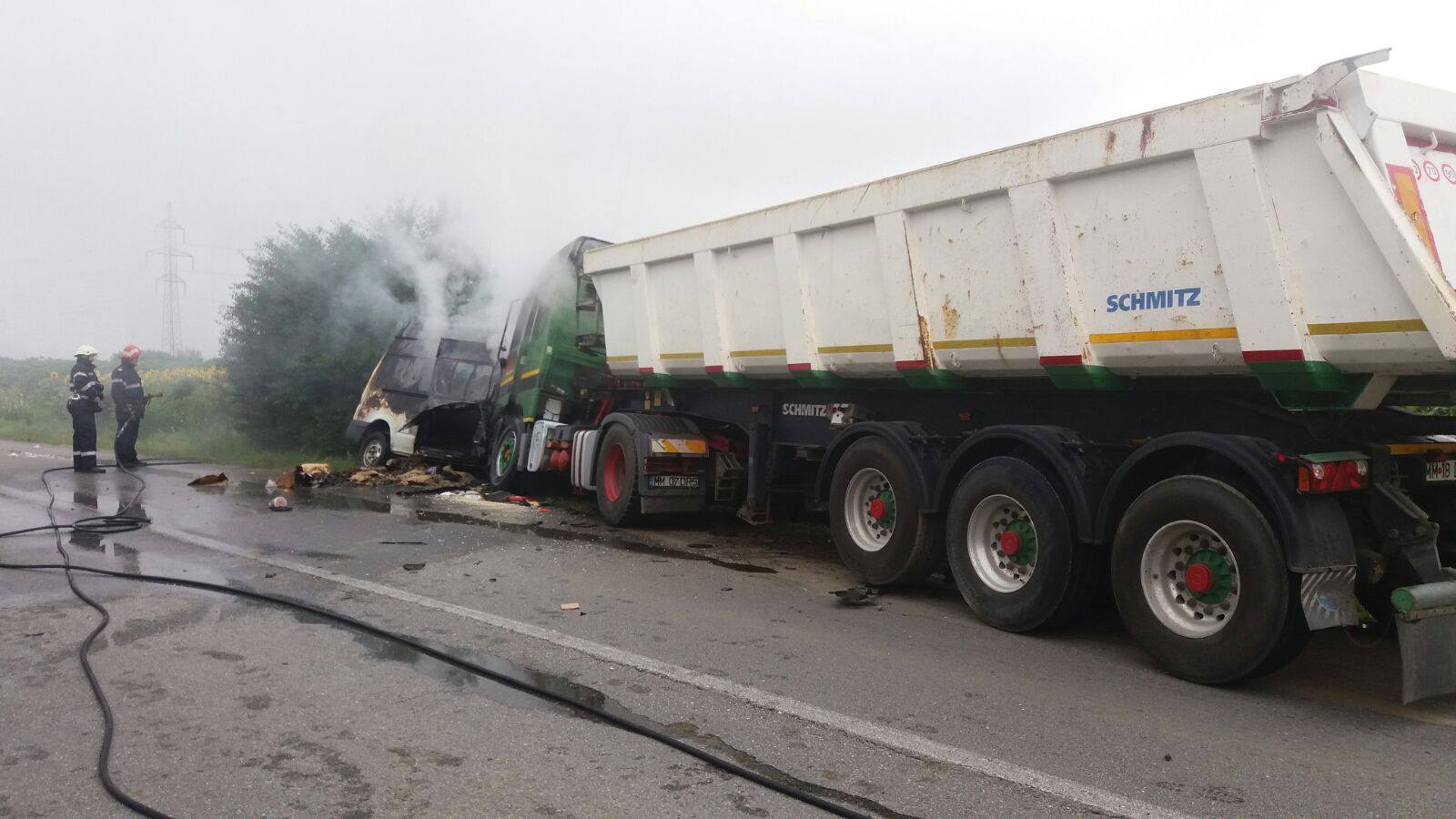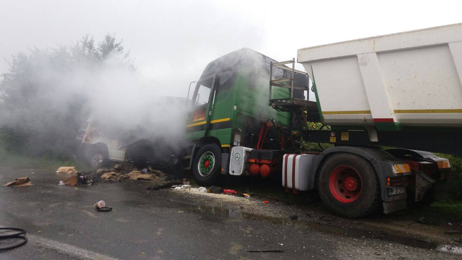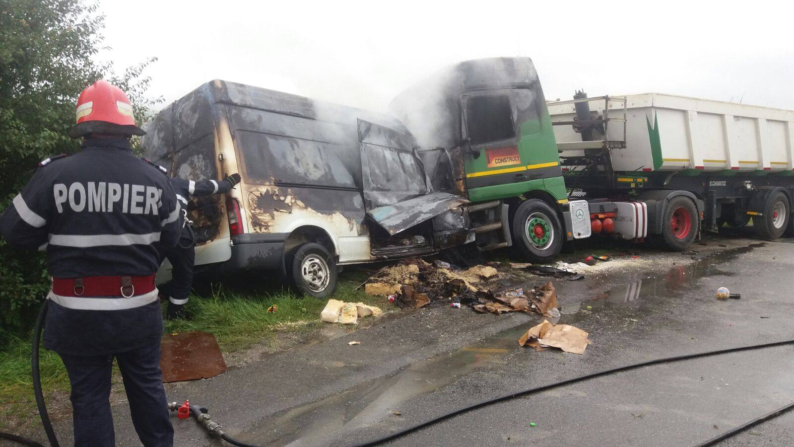 Concret, un grav accident de circulație s-a petrecut luni, în jurul orei 08.20, pe Drumul Județean 193, pe raza localității Colțirea, județul Maramureș. Un autocamion și o autoutilitară s-au ciocnit frontal, iar mașina mai mică a fost cuprinsă de flăcări.
