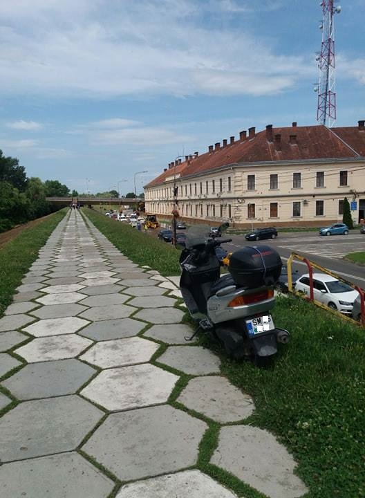 FOTO. TUPEU. Cu scuterul pe dig, în centrul Sătmarului, chiar lângă Poliția Locală