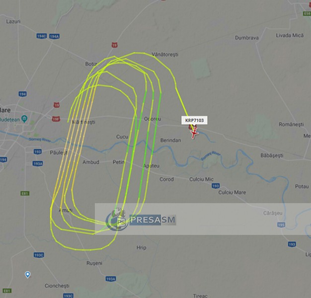 Un avion aparținând companiei Carpatair a survolat de șase-șapte ori o parte din județul Satu Mare, respectiv spațiul aerian deasupra localităților Odoreu, Botiz, Păulești, Viile Satu Mare.