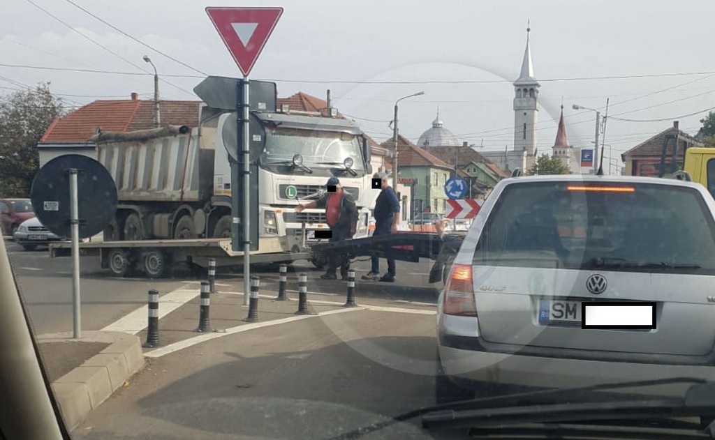 Un nou accident rutier a avut loc astăzi, în jurul orei 14.50, în sensul giratoriu din intersecția de la Burdea, în municipiul Satu Mare. Potrivit primelor informații, un bărbat, în vârstă de circa 60 de ani, care se afla la volanul unui camion, ar fi intenționat să schimbe banda, dar a acroșat remorca tractată de o autoutilitară, condusă de către un bărbat de circa 50 de ani.