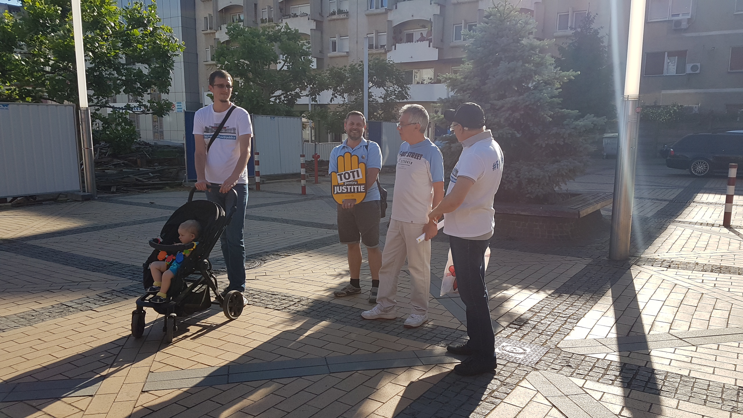 La protest au fost doar câteva persoane, care au purtat tricouri inscripționare cu mesajul "Fără penali în funcții publice"