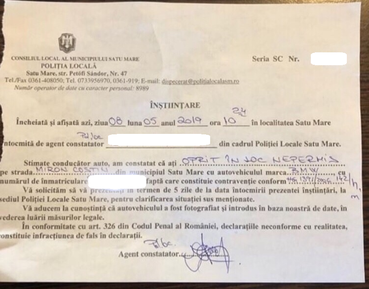 Se pare că mașina nu a blocat accesul în curtea casei în fața căreia mașina era parcată pentru că aceasta aparține proprietarului casei. Plecat din țară, dar în strânsă legătură cu prietenii săi, astăzi, proprietarul mașinii a aflat de la prietenul său că a găsit o foaie în geamul casei situate pe strada Miron Costin, unde este informat că trebuie să achite suma de 550 de lei pentru că ar fi oprit mașina în loc nepermis și a blocat accesul în curte. Adică proprietarul și-a blocat accesul cu mașina în propria curte…