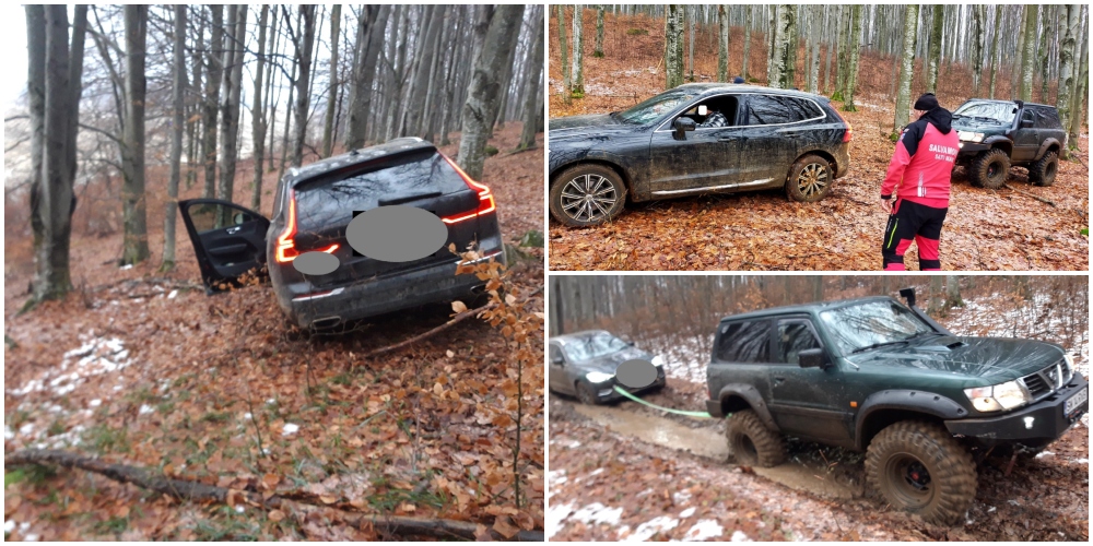 Un ajutor imens a constat în apariția a doi off-roaderi locali, cu doua 4×4 echipate, cu ajutorul cărora s-a reușit deblocarea și scoaterea în siguranță a vehiculului din zona de abrupt. La finalul intervenției reușite de ieri, după câteva întrebări rămase, la care nu le-am putut găsi răspuns nici până în ziua de azi, pot afirma cu certitudine că acest tânăr a avut o șansă imensă de a fi rămas întreg!… și el și mașina pe care o conducea”.
