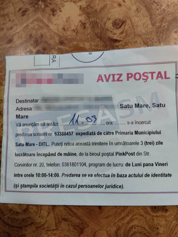 Doar că, ulterior, oficialii Direcției de Impozite și Taxe Locale (DITL) și firma care asigură serviciile poștale au realizat că este nevoie de o ”confirmare de primire”, astfel încât au remis - o lună mai târziu - adică în 7 martie 2023, un nou set de scrisori, dar care trebuie ridicate de la sediul DITL.