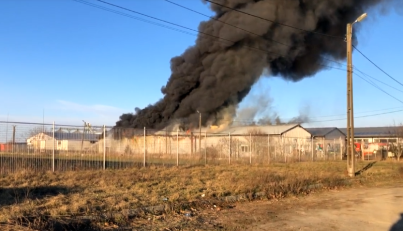 Este o hală în care sunt depozitate cauciucuri, dar care mai adăpostește și birouri. Conform informațiilor PresaSM, nu ar fi rezultat victime, doar pagube materiale însemnate.