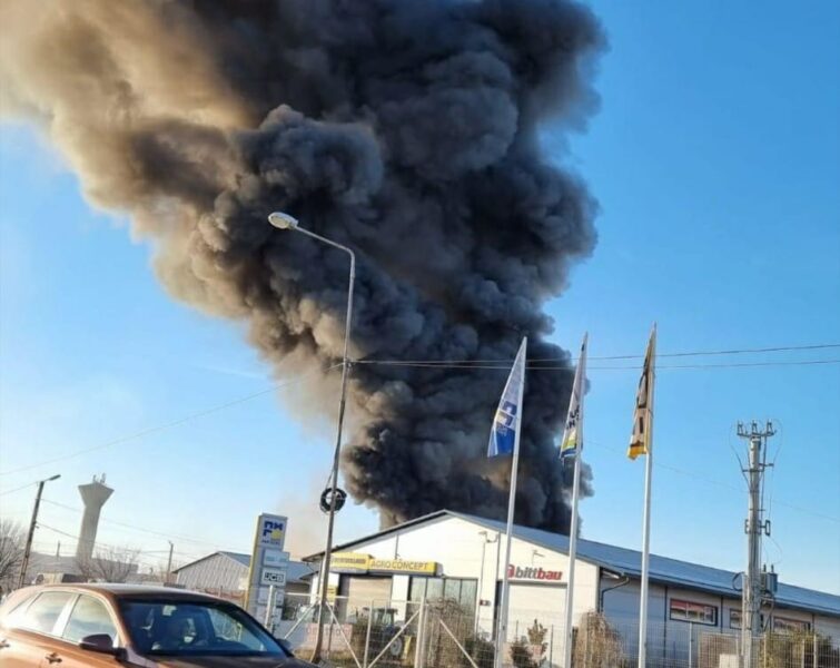 Incendiu de proporții la o societate comercială din municipiul Carei, la ieșire spre municipiul Satu Mare. A fost dat un mesaj prin sistemul Ro-Alert!