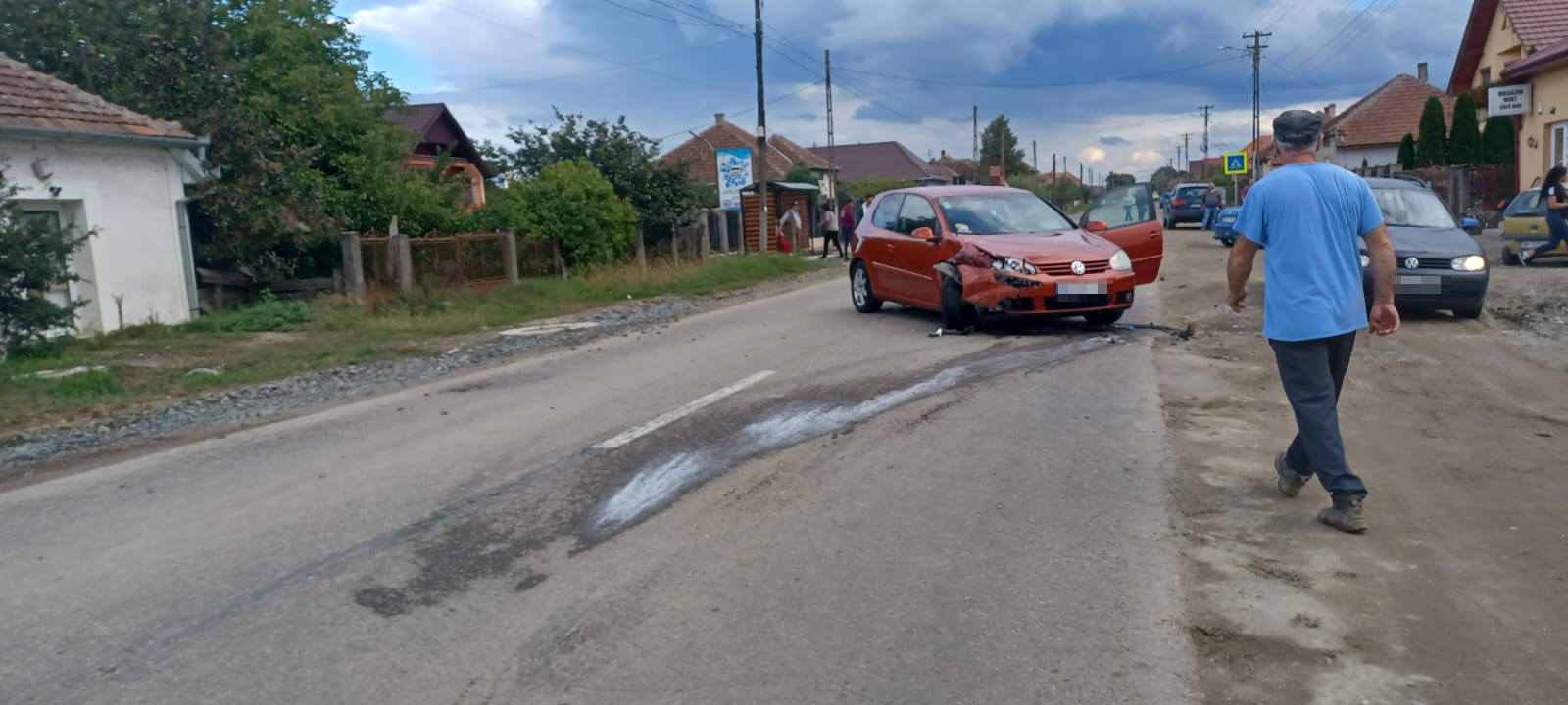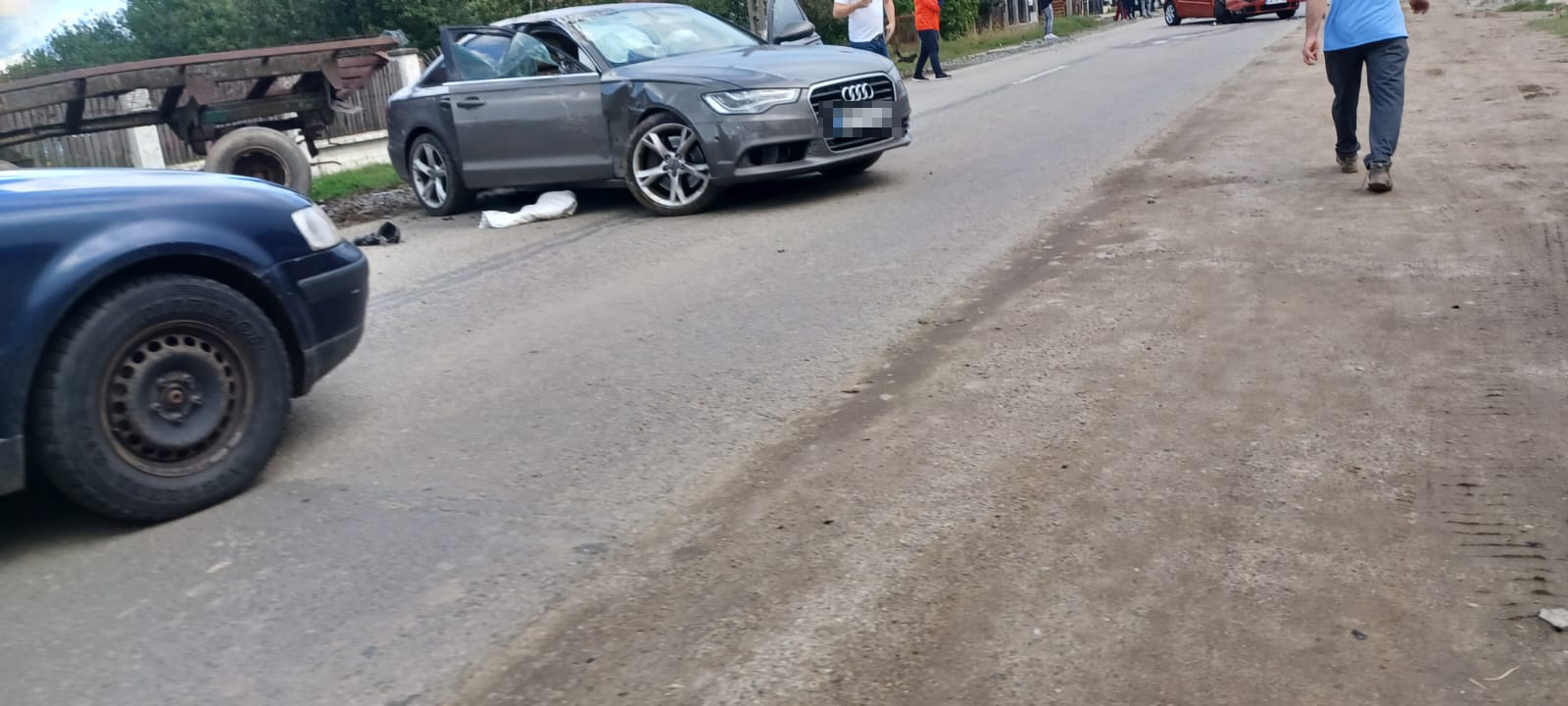 În direcția opusă circula un autoturism, condus de un bărbat, de 28 de ani, care pentru a evita impactul cu autoturismul lovit, ar fi efectuat un viraj, intrând în coliziune cu o remorcă agricolă, care staționa înafara părții carosabile.
