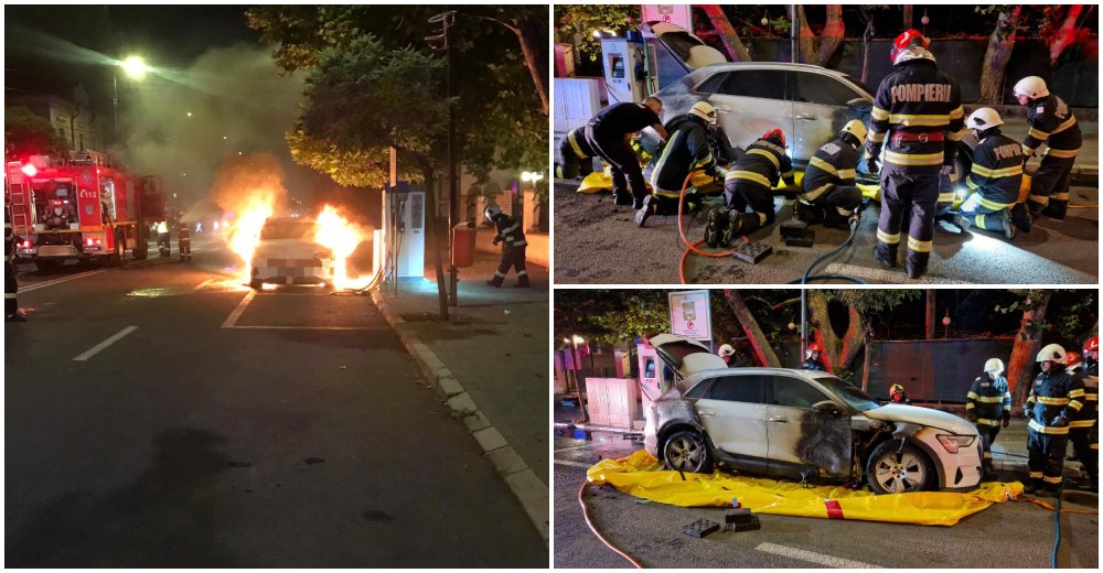 Ajunse la fața locului, echipajele de intervenție au constatat că incendiul se manifesta violent în zona frontală a autoturismului, cu posibilitate de propagare la întregul vehicul și la stația de încărcare pentru vehicule electrice.