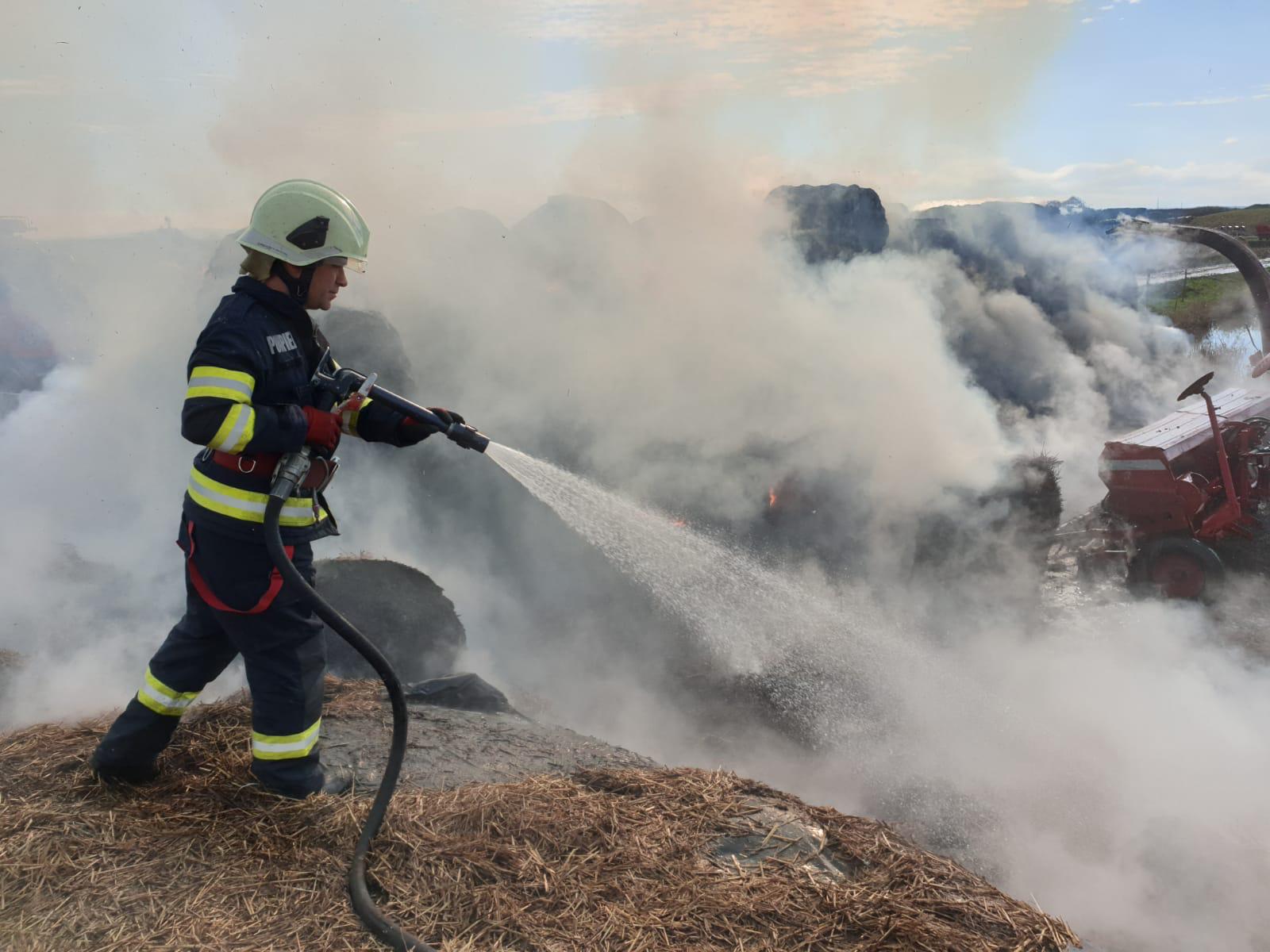 La sosirea echipajelor de intervenție, incendiul se manifesta cu violență, fiind cuprinse de flăcări mai multe materiale combustibile: rotobaloți de fân și paie.