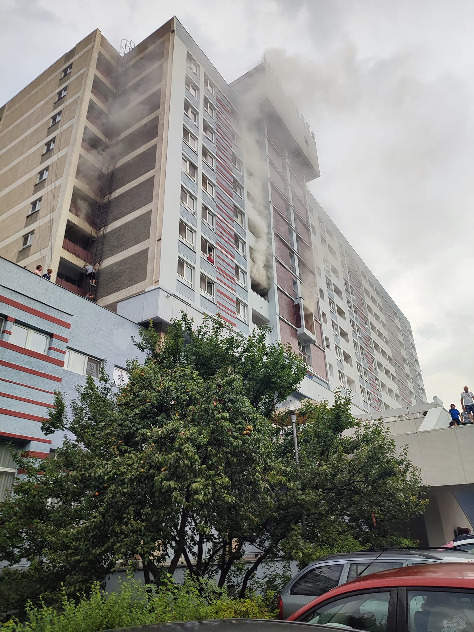 În imaginile surprinse de trecători se vede cum fumul iese din două camere ale hotelului, iar câțiva dintre turiștii cazați acolo ies prin balcoane pe scara de incendiu.