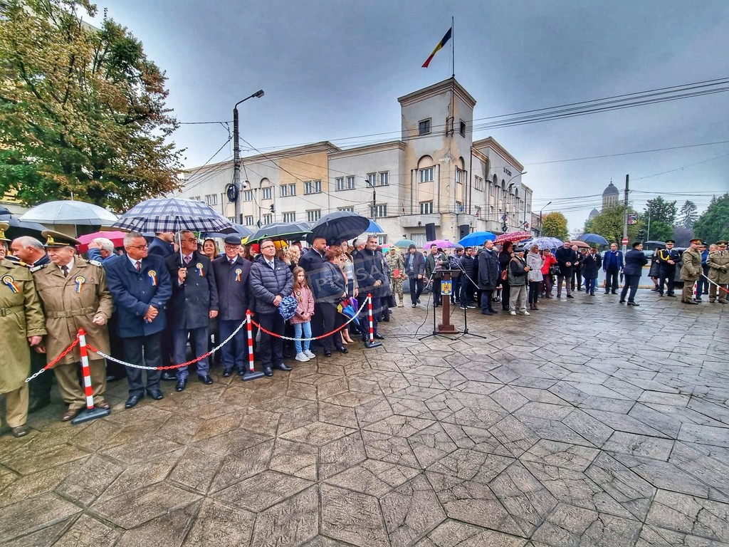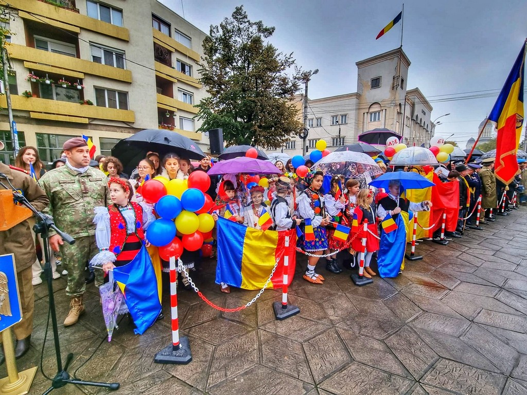 Doar ploaia de toamnă le-a dat bătăi de cap celor care au dorit să participe la ceremonialul organizat de Ziua Armatei. Dar pe cei mici, stropii de ploaie nu i-au ținut departe, îmbrăcați în port popular, cu tricolorul în brațe și baloane colorate, au venit să fie alături de militari.