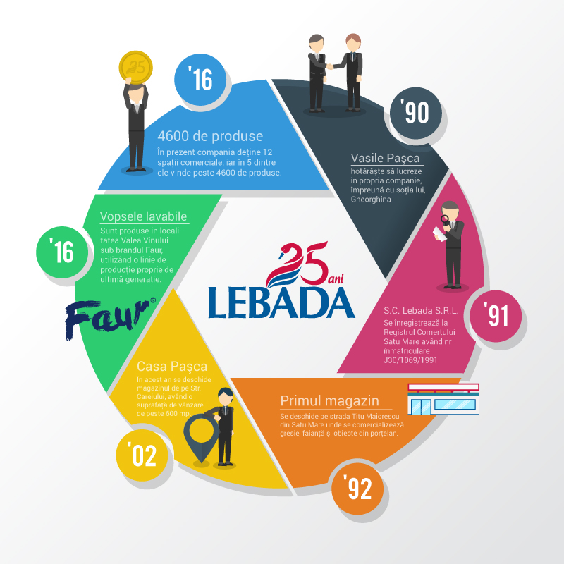 Brandul Lebăda este ideea sătmărenilor Vasile și Gheorghina Pașca. Aceștia au pornit de jos și au pus bazele firmei în anul 1991. Mai exact, de la un mic magazin din municipiul Satu Mare, la începutul anilor 90, și a ajuns în prezent la un număr de 12 spații comerciale. Peste ani, Lebăda a devenit mai mult decât un brand. A devenit o familie.