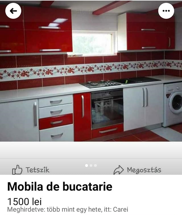 ”Mi-am luat o mare țeapă cu un ''meseriaș'' la mobila de bucătărie: 7.500 de lei. Unii spun că e puțin, alții nu, unii mi-au spus că se poate repara, alții nu. Mie, sincer, mi-ar parea rău să arunc banii pe fereastră, deoarece nu îi găsesc pe drumuri, dar nu cred că mai iese ceva din mobila asta”, spune Doru Zorilă pe grupul ”Meseriași sătmăreni”.