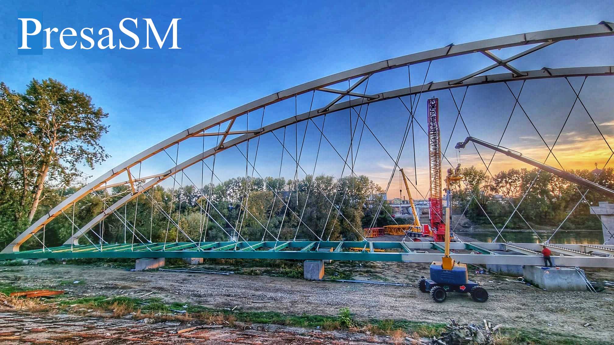 Pe malul Someșului au loc ultimele pregătiri înainte ca structura metalică a pasarelei pietonale peste râul Someș să fie pusă pe poziție. Autoritățile locale au anunțat că macaraua uriașă care va efectua spectaculoasa operațiune a sosit la Satu Mare și este în curs de montare.