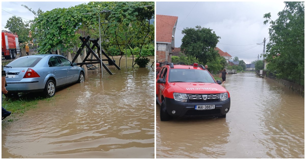 Străzi transformate în adevărate râuri la Tarna Mare, după ploile torențiale. Apa a ajuns nu doar în curțile oamenilor, ci și în beciuri și locuințe. A fost nevoie de intervenția pompierilor pentru evacuarea apei.