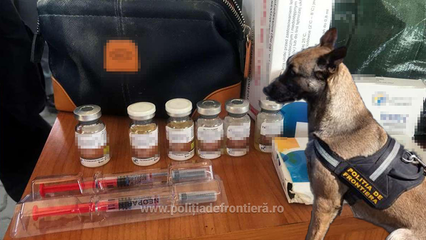 Astfel, cu ocazia controlului, polițiștii de frontieră împreună cu câinele polițist CIMA, specializat în detectarea stupefiantelor, au descoperit, ascunse în bagajele acestora, mai multe tipuri de substanțe interzise: 13 flacoane – testosterone în formă lichidă de culoare gălbuie, 36 de comprimate de culoare verde cu inscripția Anastrozole tablets IP, alte 88 de comprimate de culoare albă, 58 de comprimate de culoare maro cu inscripția Zen Szen, 78 de comprimate cu inscripția Vitamin, alte două comprimate de culoare maro cu inscripția Ashwa – Gandha, două veste anti-înjunghiere și trei tuburi cu gaz iritant lacrimogen.