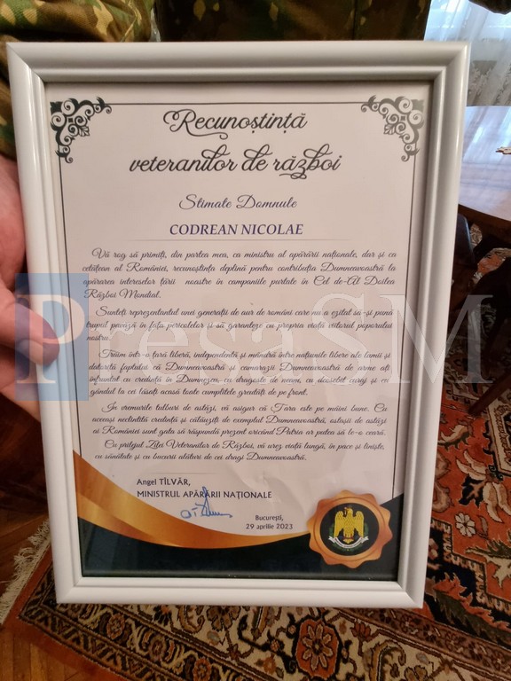 În anticiparea zilei de 19 aprilie, când sunt celebrați veteranii de război, colonelul în rezervă Nicolae Codreanu a primit vizita reprezentanților Armatei Române, care au dorit să își exprima gratitudinea față de ultimul veteran din al Doilea Război Mondial din Satu Mare. Iar militarii nu a mers cu mâna goală.