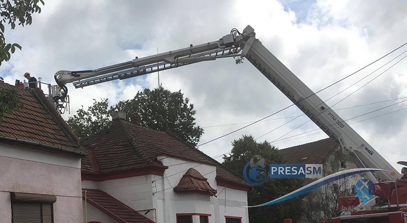 FOTO. Vijelia din Satu Mare a afectat acoperișurile caselor. Pompierii au intervenit