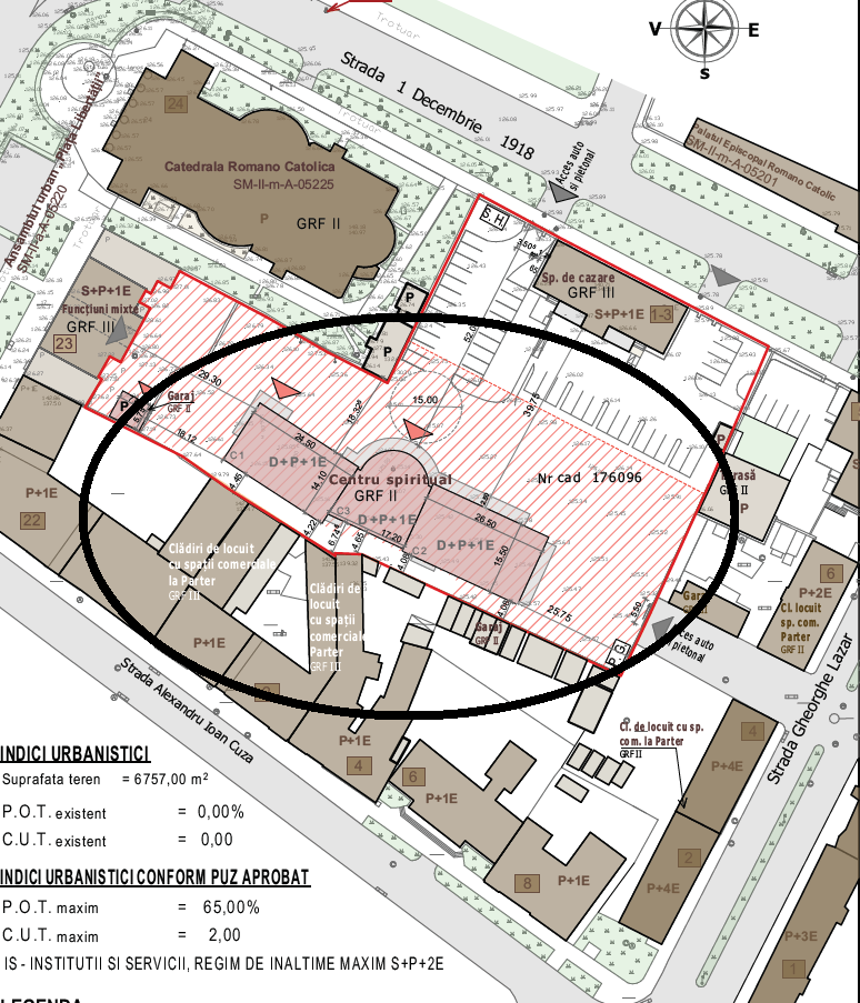 Pe terenul proprietatea beneficiarului se propune construirea unor clădiri, cu regim de înălţime de la subsol+parter+1 etaj şi parţial 2 etaje cu acoperiş tip şarpantă, parţial terasă şi funcţiunea propusă – instituţii şi servicii (social cultural). Accesul rutier şi pietonal la obiectivul propus se va face din strada 1 Decembrie 1918, precum şi din aleea carosabilă din partea posterioară, care face legătura cu strada Gheorghe Lazăr, respectiv pietonal din Piaţa Libertăţii.