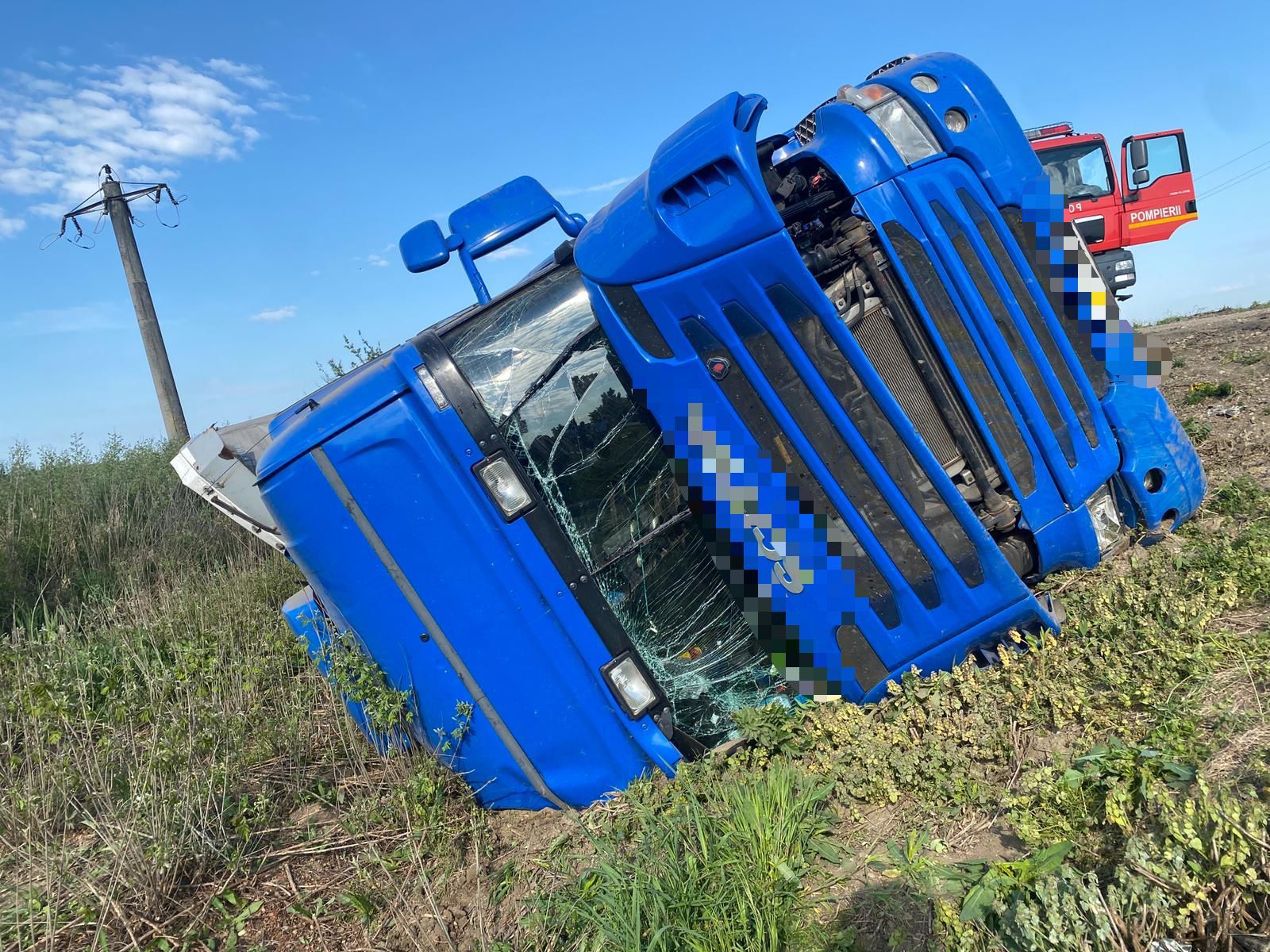 A felborult kamionban két fiatalember tartózkodott, egy 32 és egy 36 éves férfi, őket egy SMURD-rohammentővel a Szatmár Megyei Sürgősségi Kórházba szállították.