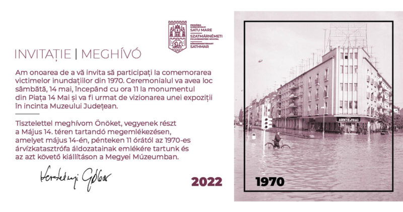Sâmbătă sătmărenii sunt invitați să comemoreze victimele inundațiilor din 1970. Potrivit bilanțului oficial, 56 de persoane și-au pierdut viața în primăvara lui '70, iar râul Someș a pus stăpânire pe o treime din județ.