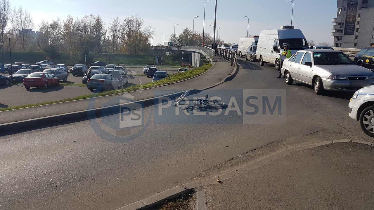 Accident rutier cu victimă în municipiul Satu Mare, la coborâre de pe Podul Decebal înspre Piața Romană. Totul s-a întâmplat astăzi, în jurul orei 12.30, atunci când un bărbat, în vârstă de circa 60 de ani, aflat pe o bicicletă (pe trotuarul de coborâre de pe Podul Decebal), a încercat să treacă drumul fără să se asigure corespunzător, intrând efectiv într-un autoturism marca Dacia Logan, condus aparent regulamentar de un bărbat, în vârstă de circa 55 de ani.
