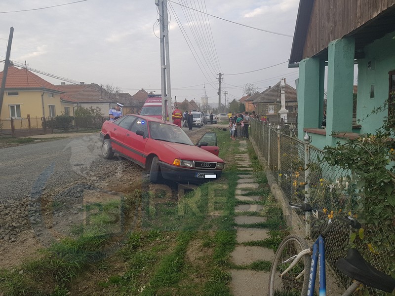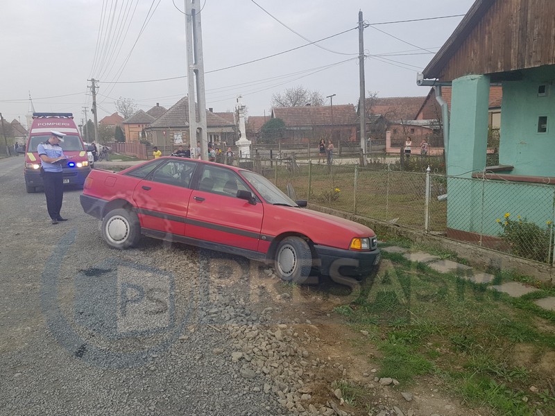 Se pare că bărbatul a realizat târziu că drumul este destul de rău, acoperit cu pietriș, a frânat și a derapat. În urma accidentului au fost rănite ceva mai serios două femei aflate în mașină.