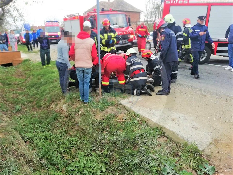 FOTOGALERIE. Accident grav, cu victime, în județ. Impact între un tractor și o mașină