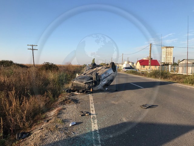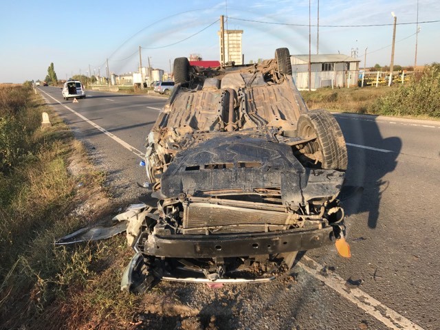 FOTOGALERIE. Accident grav pe DN 19, în județ. Mașină răsturnată și victime la Urgență
