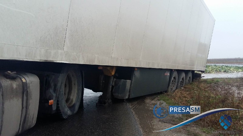 Martorii au declarat pentru PresaSM că șoferul ar fi un rus, care ar fi încercat să întoarcă autotrenul, dar nu și-a calculat bine traiectoria, ajungând în șanț.