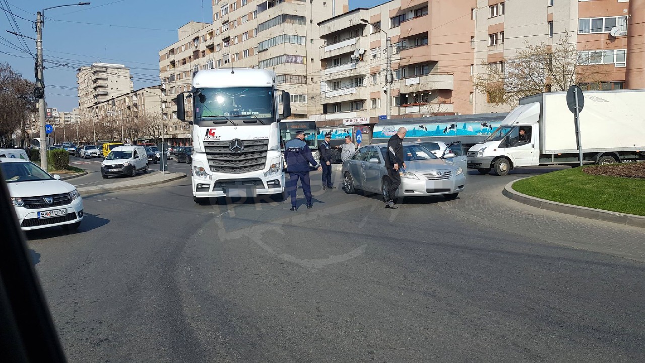 Incident rutier pe Drumul Careiului, în sensul giratoriu de la coborârea de pe Podul Golescu. Potrivit primelor informații, șoferului unui autotren, înmatriculat în județul Cluj, nu a fost atent la un autoturism, înmatriculat în județul Satu Mare, acroșându-l lateral.