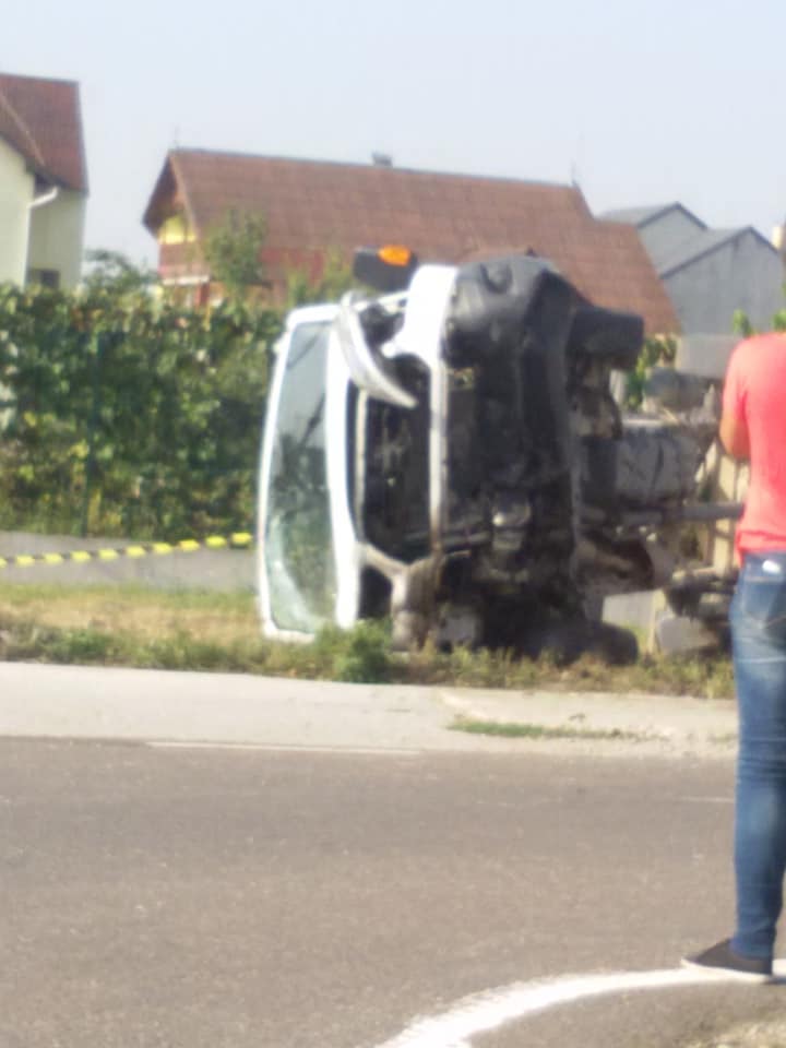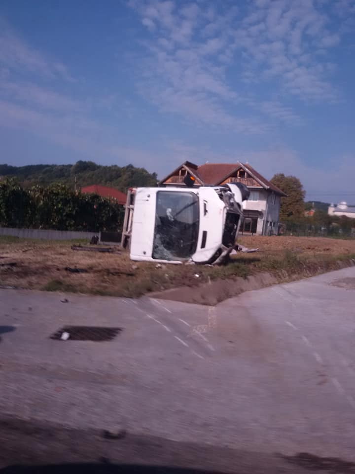 Din cauza impactului violent autoturismul Volvo a ajuns într-un gard, iar autoutilitara s-a răsturnat pe marginea drumului.